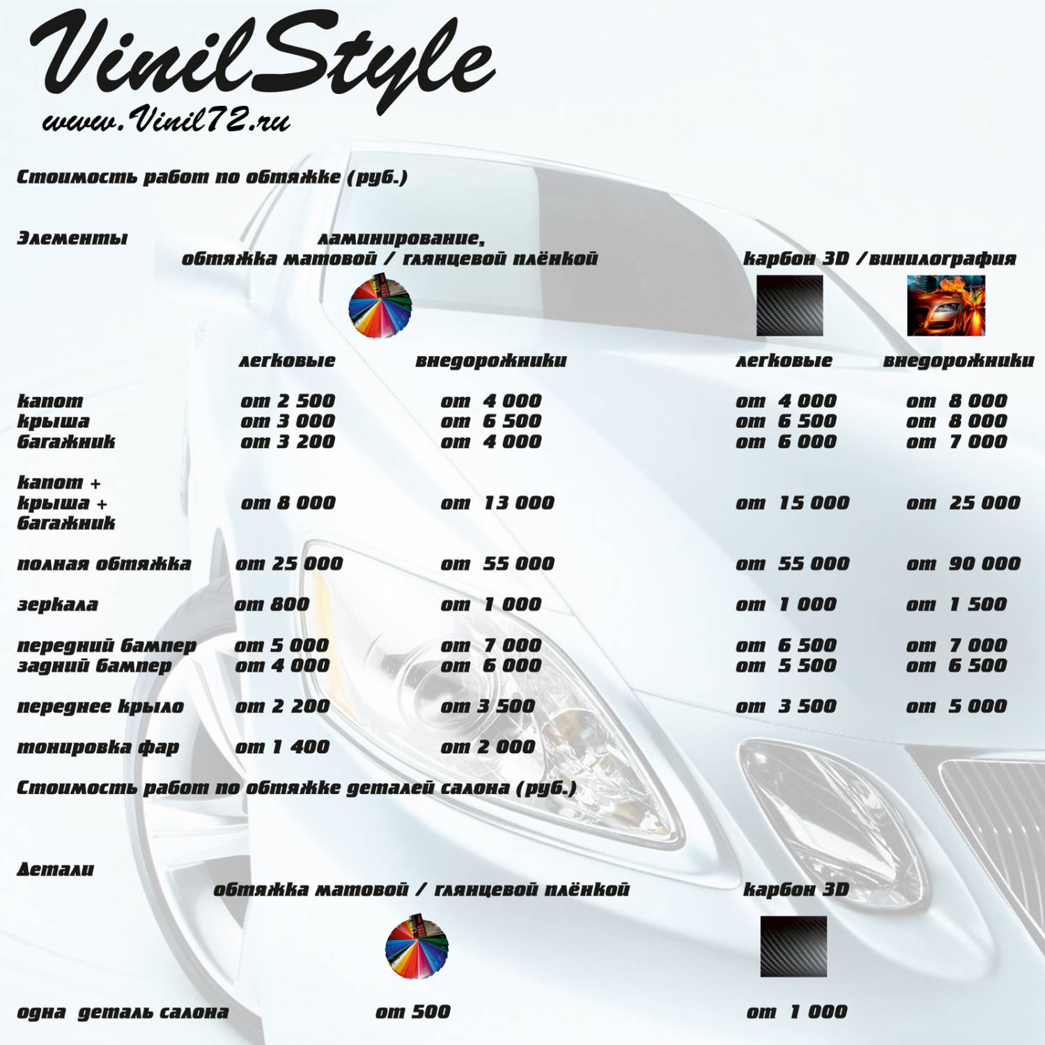 У нас есть такая услуга, как полноцветная печать, которая в полной мере может заменить работу мастера-аэрографа и даст Вам возможность за короткий срок изобразить на Вашем автомобиле все, что Вы только пожелаете, - любую фотографию или рисунок, которые Вам нравятся.